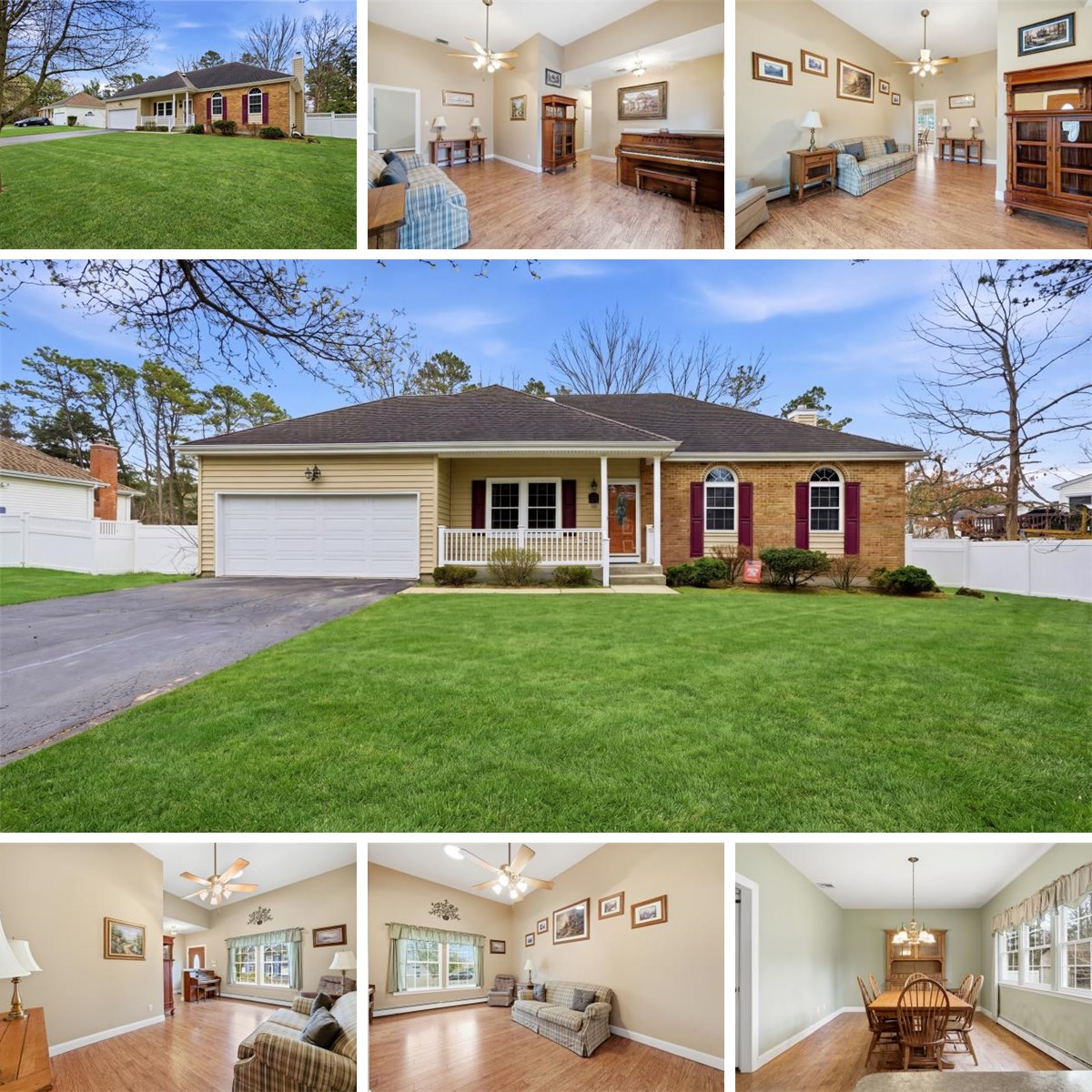 Welcome to Pine Woods at Coram—where everyday living feels effortlessly elevated. This expanded ranch is far more than meets the eye, offering the ease of true one-level living wrapped in a thoughtfully designed, open-concept layout. From the moment you step inside, a formal living room welcomes you and flows seamlessly into a relaxed dining space—perfect for both intimate dinners and lively gatherings. At the heart of the home, a center island kitchen opens to a sunlit den with soaring 11-foot ceilings, creating a space that feels both grand and inviting. The full basement with high ceilings and an egress window offers endless possibilities—whether you envision a home gym, media retreat, or extended living space—while still providing abundant storage. Outside, enjoy a fully fenced yard and the convenience of a two-car garage. This is easy, future-forward living—just minutes from shopping, major highways, and town beaches known for some of Long Island’s most breathtaking sunsets.